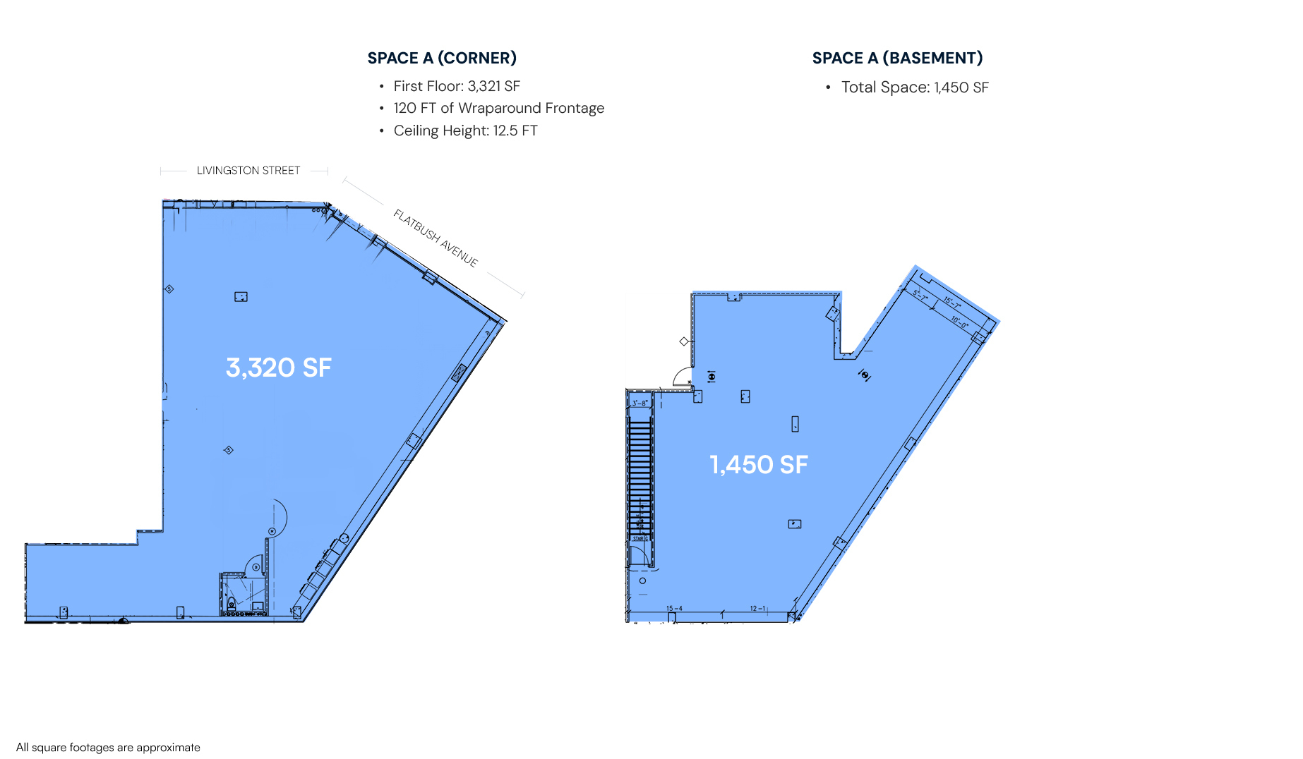 - Space A (Corner): 3,321 SF